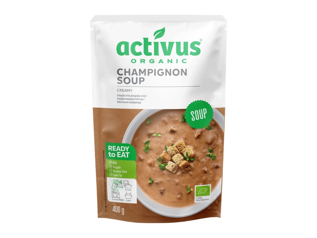 Az Activus krémes gombalevese az igazi ízek szerelmeseit és az egészséges táplálkozás híveit fogja elkápráztatni. Gondosan válogatott BIO összetevőket tartalmaz, és teljesen mentes a mesterséges összetevőktől, a hozzáadott cukortól és a tartósítószerektől. Teljes gombaízének és egyszerű elkészítésének köszönhetően ideális egy gyors ebédhez vagy vacsorához. A leves vegánok számára is alkalmas. A könnyű zacskós csomagolás jelentősen alacsonyabb szénlábnyommal rendelkezik, mint a hagyományos üveg- vagy fémcsomagolás.