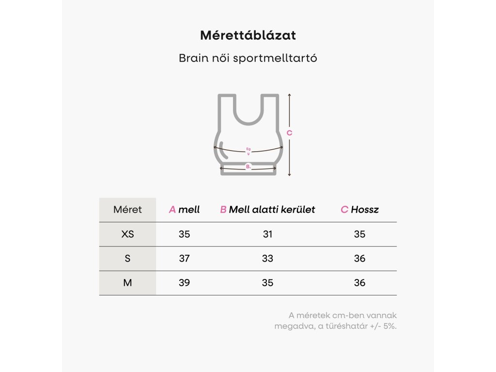 Ha a mell alatti kerület alapján például L méretet kap, de nagyobb a melltérfogata (például F vagy G kosár), javasoljuk, hogy válasszon egy sportmelltartót egy mérettel nagyobbat (XL).