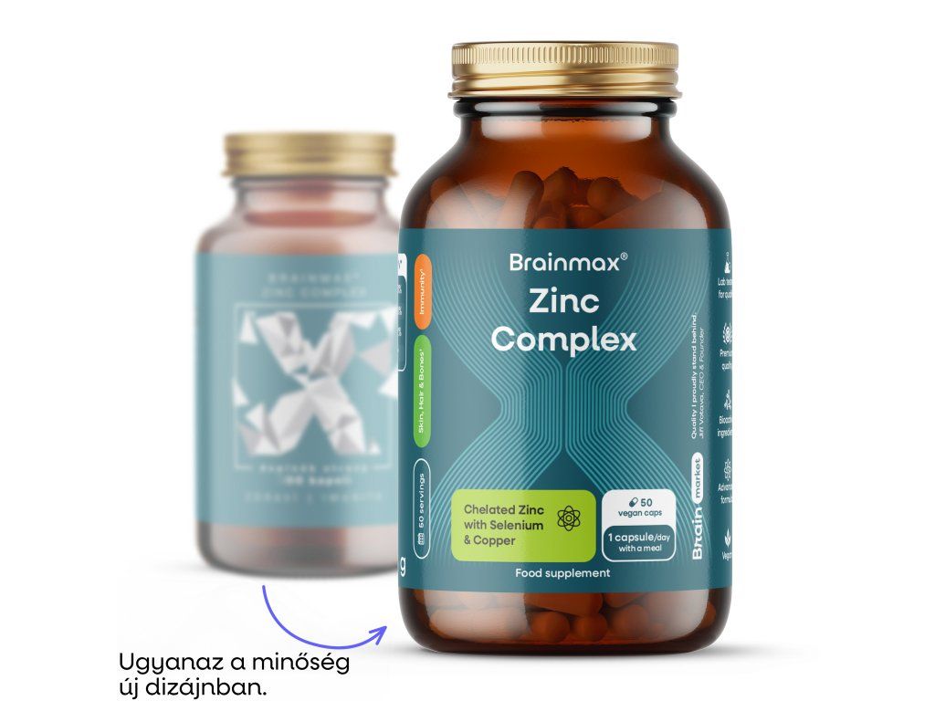 BrainMax Zinc Complex®, 50 növényi kapszula Cink, réz és szelén kombinációja magas biológiai hasznosulású formákban, 50 adag, étrend-kiegészítő