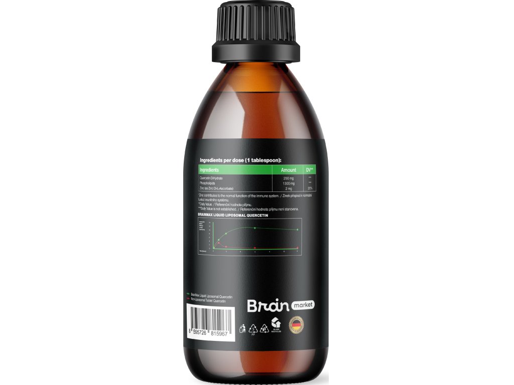 A kvercetin, egy természetesen előforduló flavonoid, alacsony biohasznosulásáról ismert, ami azt jelenti, hogy a szervezet rosszul szívja fel a hagyományos táplálékkiegészítőkből. Hagyományos formáiban rosszul oldódik és gyorsan kiürül. Egy, a BrainMax folyékony liposzómás kvercetint a hagyományos tabletta formájával összehasonlító tanulmány azonban jelentős javulást mutatott. A liposzómás kvercetin biohasznosulása akár 11,6-szor magasabb volt, és vérkoncentrációja teljes 12 órán át magas maradt. Ez azt jelenti, hogy a hatóanyag nagyobb része hosszabb ideig áll rendelkezésre a szervezet számára, ami biztosítja a termék jobb hasznosulását és hatékonyságát.