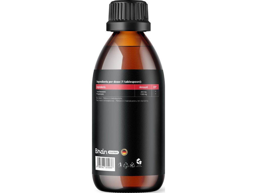 BrainMax folyékony liposzómás resveratrol, mézes dinnye, 200 mg, 250 ml A legjobban felszívódó resveratrol természetes tartósítószerekkel, 25 adag, étrend-kiegészítő