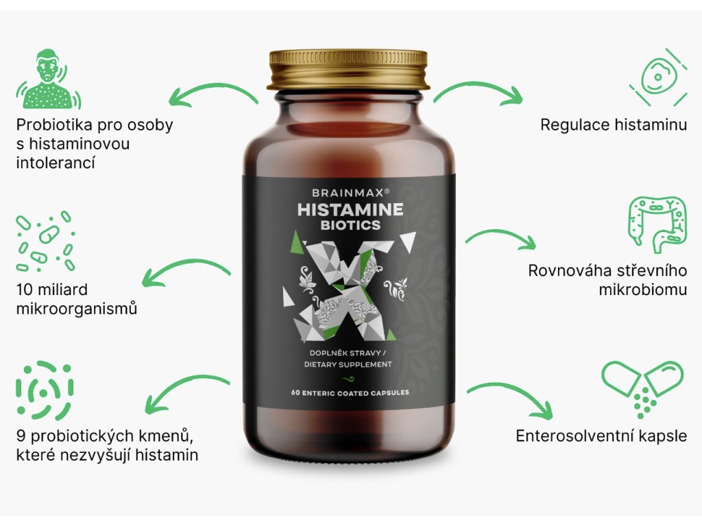 Minden barátságos baktériumtörzs támogatja bélrendszerünk egészségét, azonban a bélben egyes törzsek hisztamint termelnek, míg mások hisztaminnal táplálkoznak, segítve annak szintjét . A BrainMax Histamin Biotics 8 jótékony hatású Lactobacillus és Bifidobacterium baktériumtörzsből álló, kifejezetten hisztamin intoleranciában szenvedők számára készült formula .