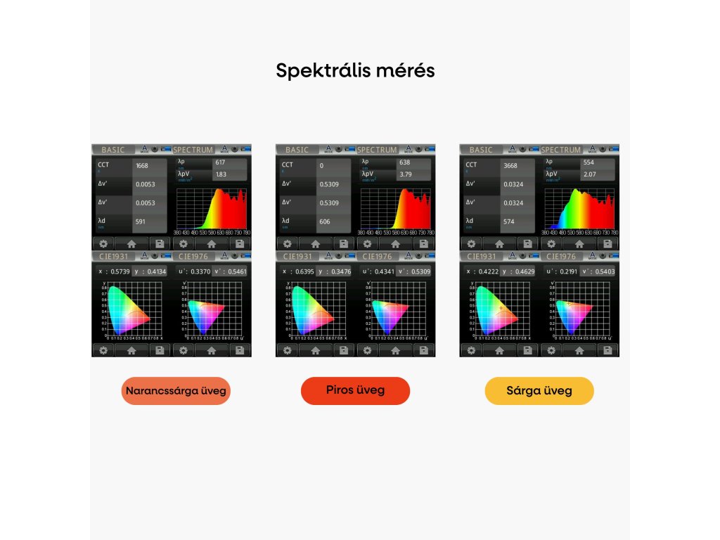 - Vörös üveg: a szemüveg akár a kék és zöld fény 100%-át is blokkolhatja. A 380 és 617 nm közötti hullámhosszú spektrumot blokkolja.