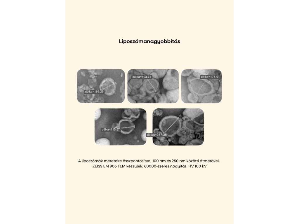 A liposzómás kiegészítőink pontosan elemzettek méret és stabilitás szempontjából, ami garantálja a tápanyagok optimális felszívódását. Modern TEM technológiát használunk, amely lehetővé teszi a liposzómák részletes vizualizálását és szerkezetük ellenőrzését, hogy megőrizzék egyedi tulajdonságaikat. Más liposzómás termékekkel ellentétben, amelyek gyakran nem érik el a kívánt stabilitást vagy hatékonyságot, a mi technológiánk garantálja, hogy a C-vitamin és a cink védve marad, és a gyerekek maximálisan ki tudják használni őket.