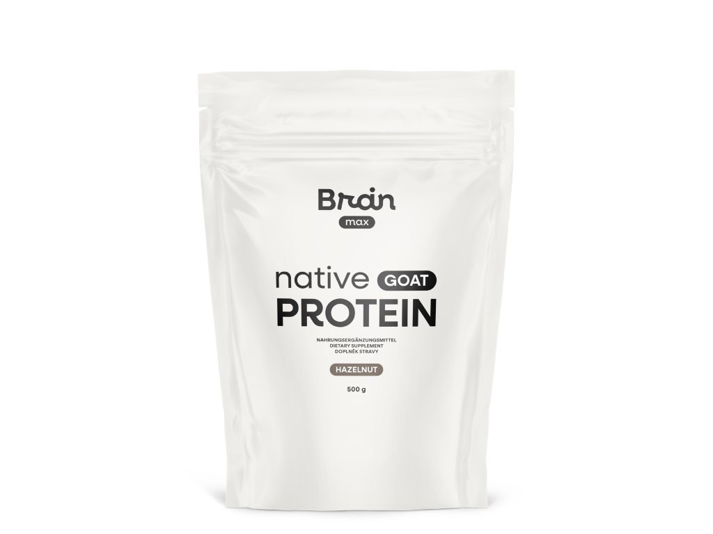 BrainMax Native Goat Protein, Hazelnut, 500 g Mikroszűrt, denaturálatlan kecsketejfehérje, 14 adag, étrend-kiegészítő