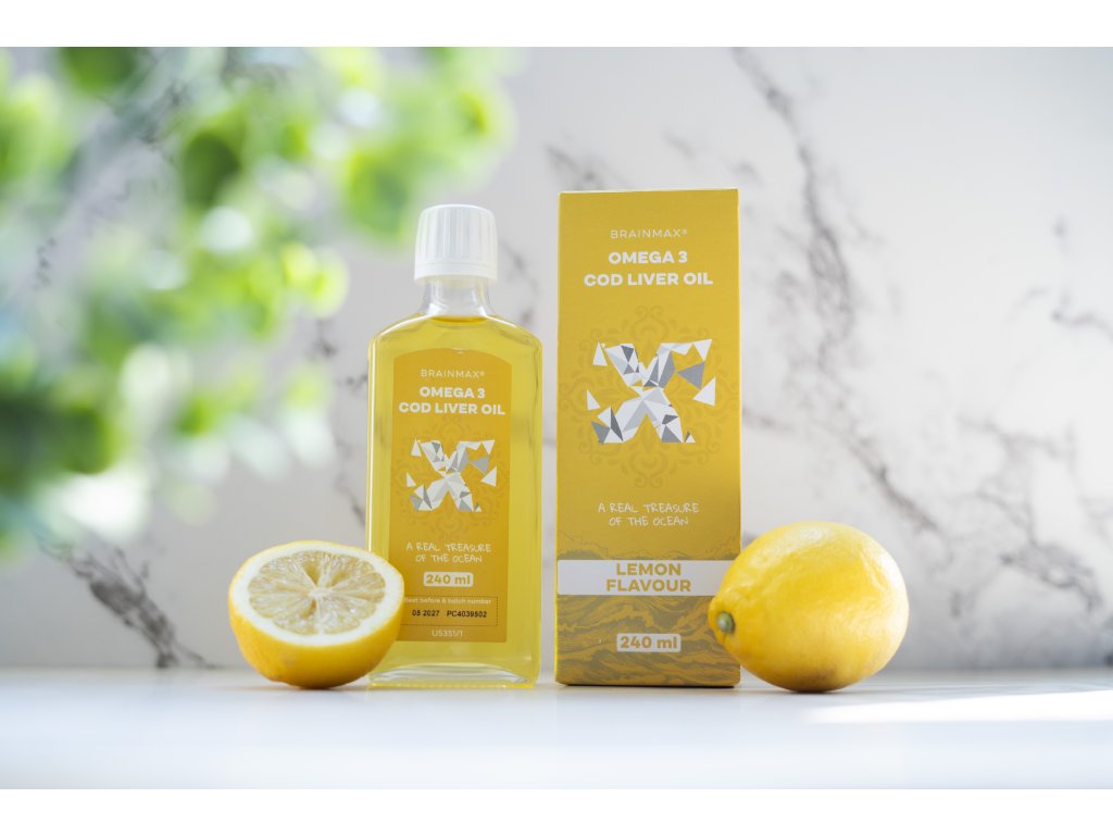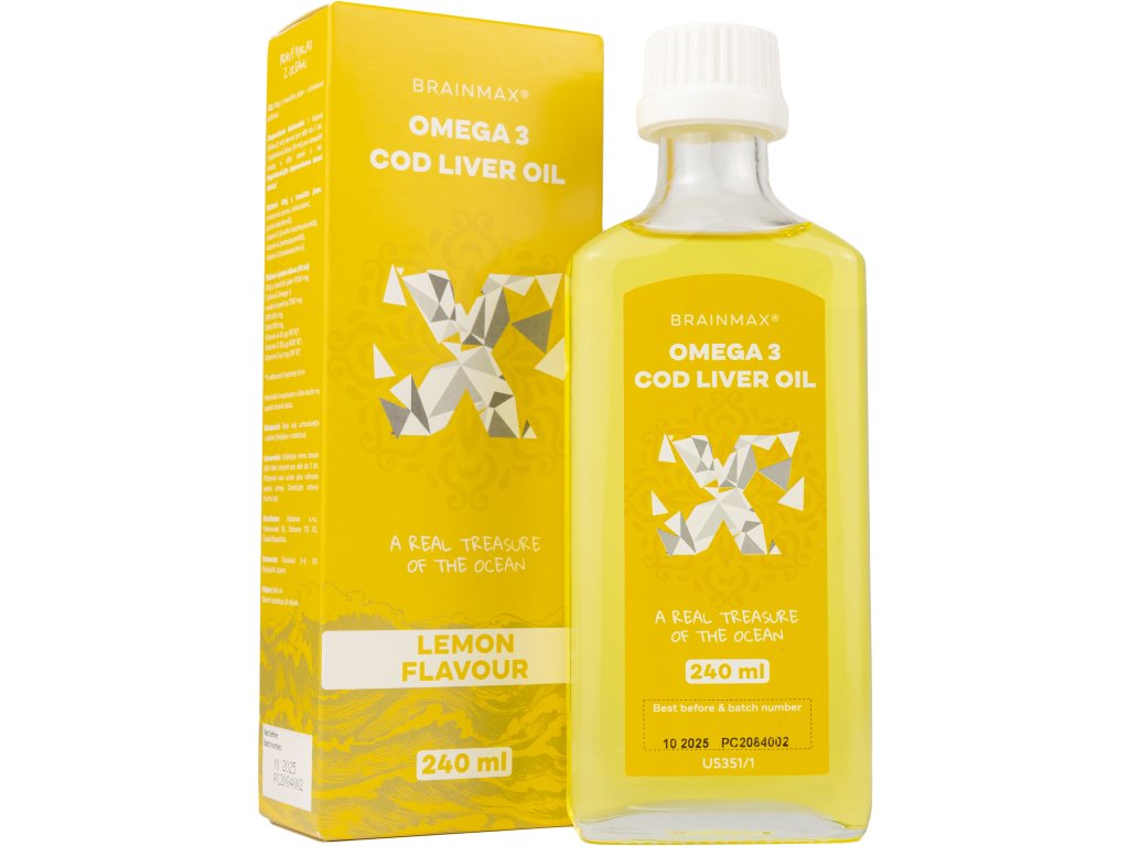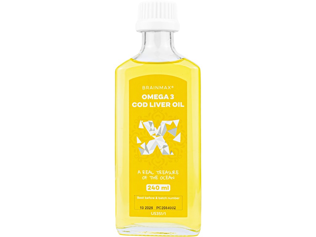 Brainmax Omega 3 tőkehalmájolaj, 240 ml// CSOMAGOLÁS NÉLKÜL Izlandi Omega-3 tőkehalmájolaj, étrend-kiegészítő
