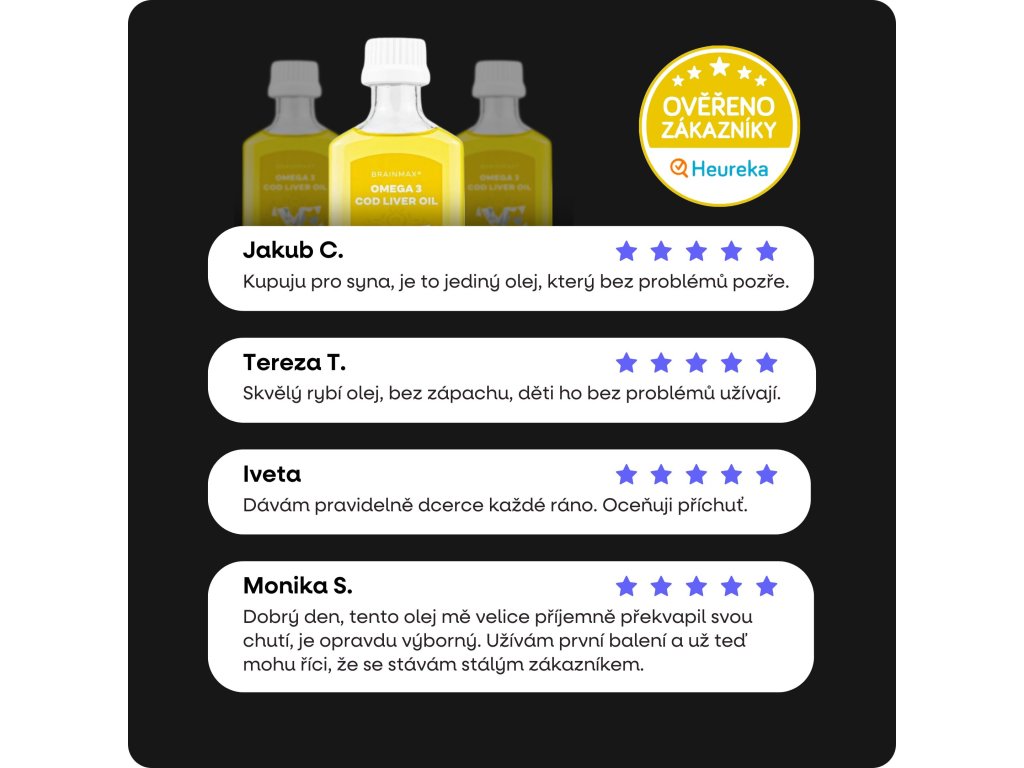 Ezért kerültünk piacra saját olajunkkal, ahol egy evőkanálnyi mennyiségben 3-8 zselatin kapszulának megfelelő mennyiségű DHA és EPA zsírsavat találsz összehasonlíthatatlanul alacsonyabb áron, de kiváló minőségben. A BrainMax tőkehalmájolajat A- és E-vitamin védi az oxidációtól, ami sokkal jobb hasznosulást tesz lehetővé sejtjeink számára. Az oxidált halolajat arról ismerheted fel, hogy vagy halszagú, vagy emésztési problémákat okoz. A minőség bizonyítékaként kipróbálhatsz egy egyszerű tesztet, ahol éhgyomorra beveszel 2 evőkanál olajunkat, és nem kell aggódnod a kellemetlen halszag vagy az emésztési problémák miatt. Az ilyen minőségű olaj jótékony hatással van a szervezetre, és biztonságosan pótolhatod vele közvetlenül a sejtek DHA-ját és EPA-ját.