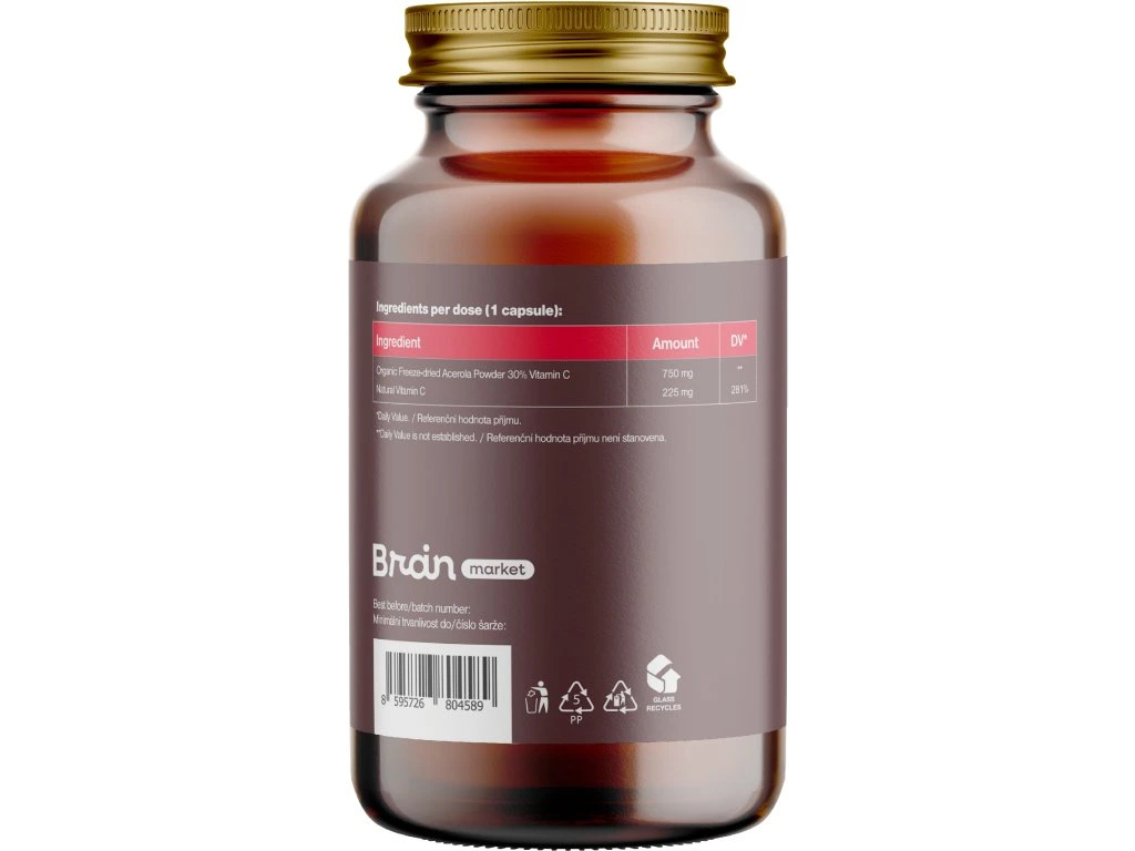 BrainMax Organic Vitamin C BIO Acerola, C-vitamin acerola kivonatból, 60 növényi kapszula Természetes C-vitamin BIO acerolából, 220 mg C-vitamin adagonként, 281% NRV, 60 adag, étrend-kiegészítő, *CZ-BIO-001 tanúsítvány