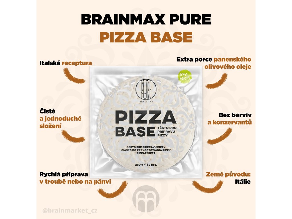 BrainMax Pure Pizza Base, kész pizzatészta Olaszországból, 2 db, EXP. Expirace 04/06/2023