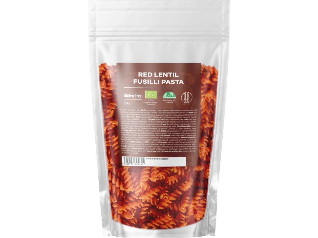 A tészta minősített BIO minőségű, az alapanyagok termesztése során káros anyagokat nem használtak fel. Csak vöröslencse lisztet, borsófehérjét és vizet tartalmaznak.