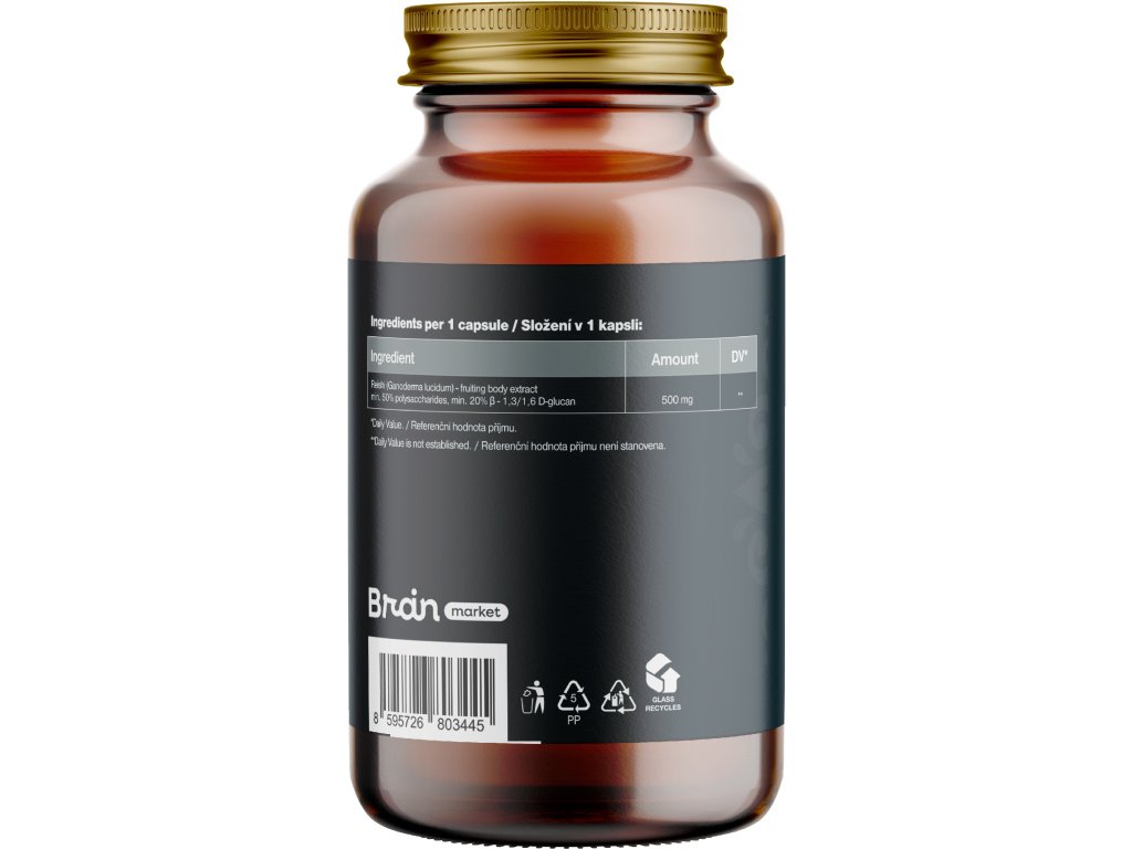 Összetétel: Reishi gomba kivonat (Lesklorka lesklá, Ganoderma lucidum), növényi kapszula HPMC alapon. Vegánok számára alkalmas.