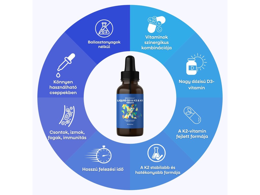 A D3, K2 és K1 vitaminok fontosak mindazok számára, akik hosszú távon szeretnének gondoskodni csontjaikról, fogaikról és általános vitalitásukról. A növekedésben és fejlődésben lévő gyerekek esetében ezek a vitaminok kulcsfontosságúak a test megfelelő felépítéséhez és a természetes testi funkciók támogatásához. Kiegészítésük különösen ajánlott a téli hónapokban, amikor kevesebb a napfény, még azoknál a gyerekeknél is, akik a nap nagy részét beltéren töltik.