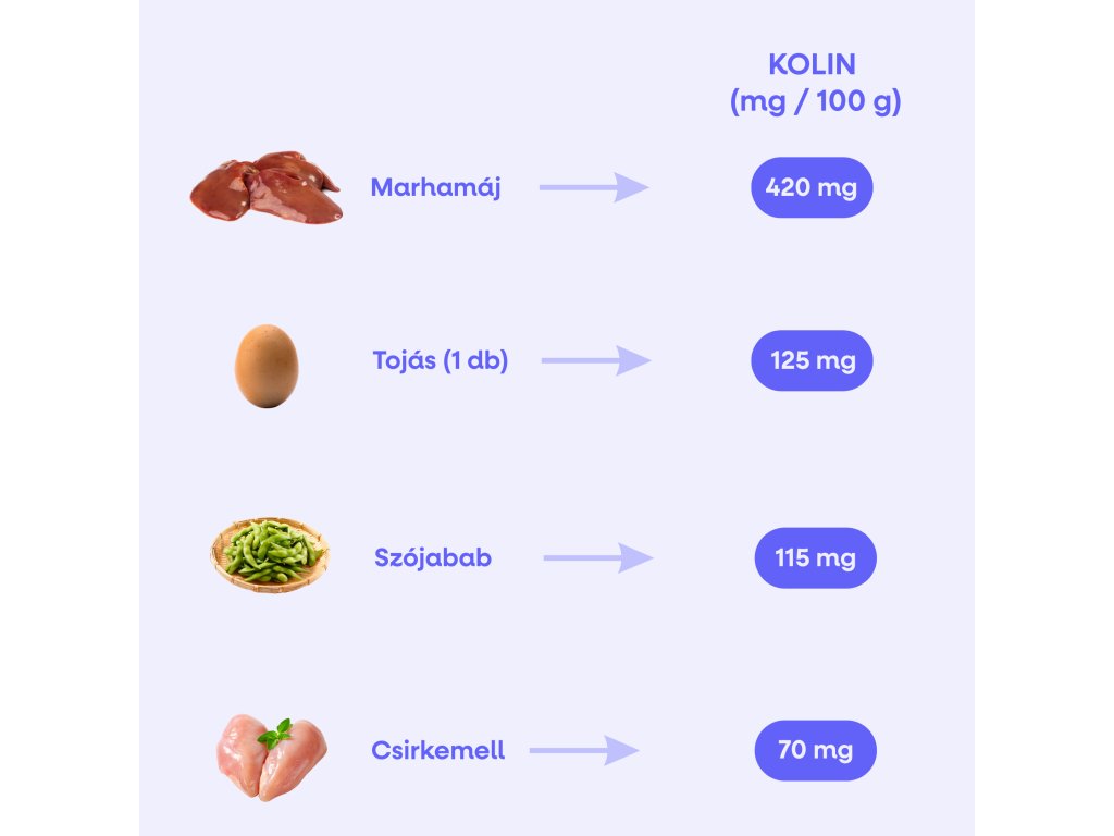 - Genetikai polimorfizmusok (pl. MTHFR, PEMT) esetén a szervezet korlátozottan képes kolint termelni.