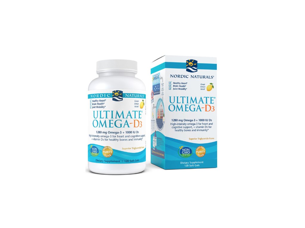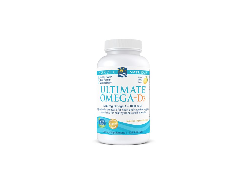 Az Ultimate Omega-3 1280 mg omega-3 esszenciális zsírsavat tartalmaz minden adagban. Segít optimalizálni az immunrendszert, támogatja a szív, az agy, az idegrendszer és az ízületek mobilitását. Minden Nordic Naturals halolaj -terméket trigliceridek molekuláris formájában kínálnak - olyan formában, amely természetes módon fordul elő a halakban, és abban a formában, amelyet a szervezet a legkönnyebben felszív. A végső omega D -vitaminnal dúsított, amely elősegíti a kalcium tárolását a csontokban , ezáltal javítja a csontok egészségét .