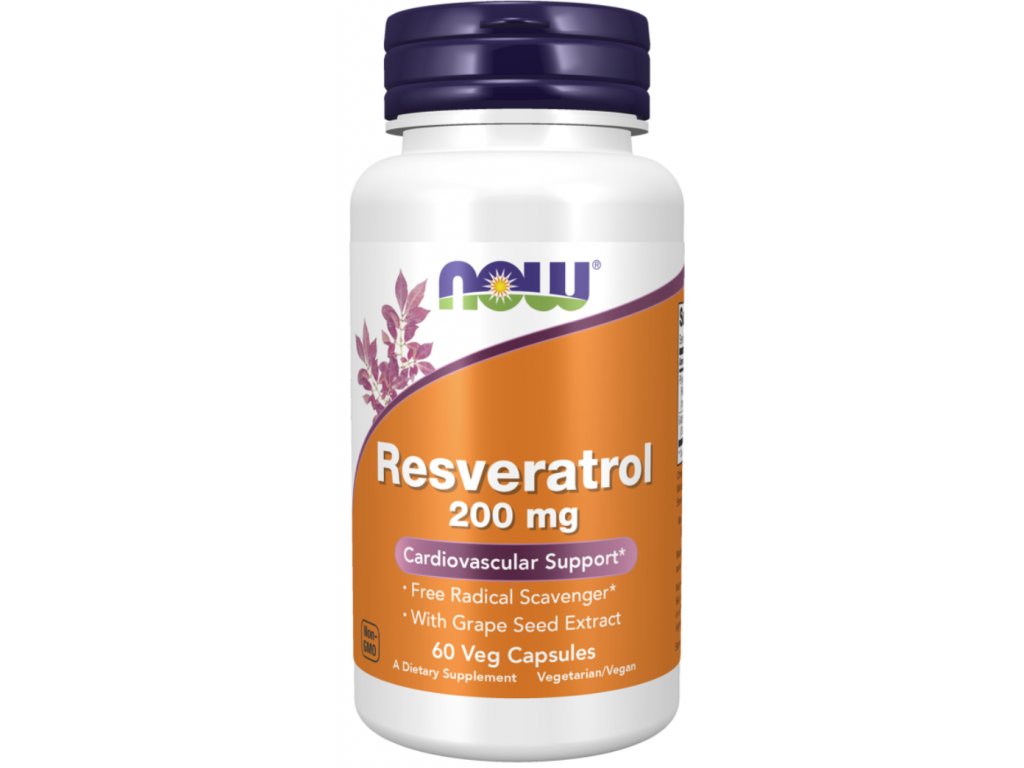 NOW Resveratrol (szőlőmag kivonattal), 200 mg, 60 kapszula