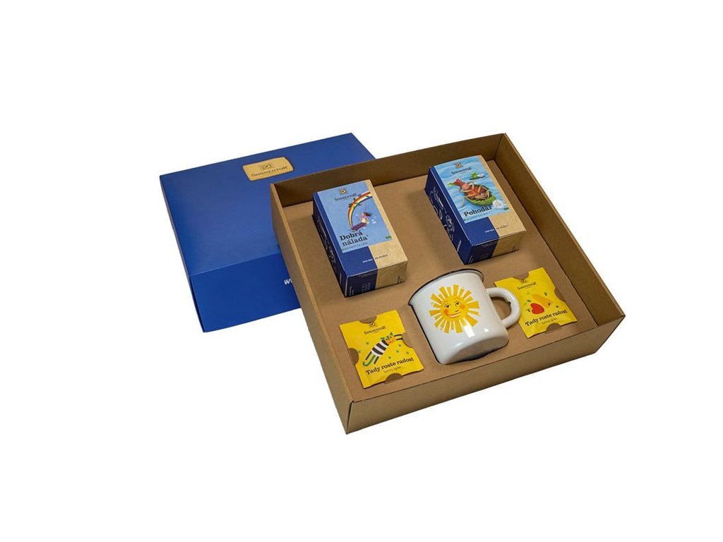 Sonnentor ajándékdoboz Pohoda Bio teákat tartalmazó ajándékdoboz bögrével