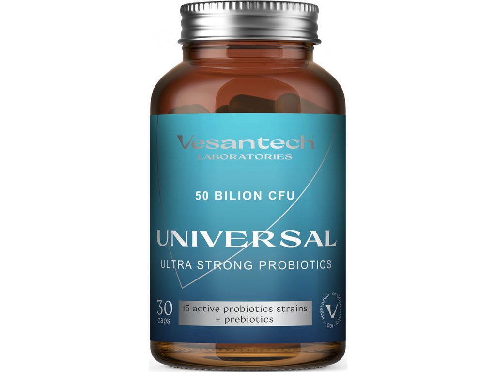 Egyedülálló, ultra-erős univerzális élő probiotikum nőknek és férfiaknak , 15 aktív probiotikus törzzsel és 50 milliárd CFU-val egy adagban a maximális hatás érdekében, speciális kapszulában, amely az élő törzseket célba juttatja. Az aktív tenyészetek nagy száma, akár 50 milliárd CFU egy adagban, és ezeknek a probiotikus törzseknek a tudományosan megalapozott összetétele a Vesantech probiotikumokat a legerősebb aktív probiotikumok közé emeli a piacon.